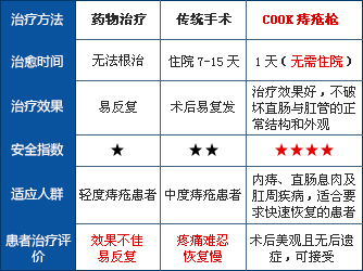 目前治疗痔疮的方法有很多,药物治疗、传统手术治疗、微创治疗等治疗方法让患者在选择的时候不知从何下手。为了方便患者做正确选择,专家对各种治
